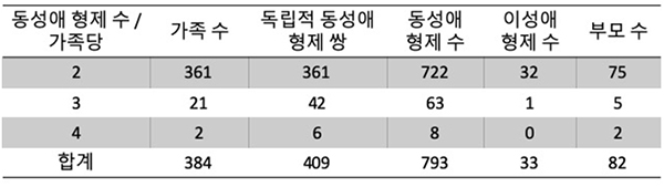 본 연구에서는 주로 영어를 사용하는 몇몇 카운티, 특히 미국에서 두 명 이상의 동성애자 형제가 있는 가정을 모집하여 미국(98.2 %), 캐나다(1.6 %) 및 영국(0.2 %)의 가정들로 연구 집단을 모집하였으며 이전에 성적 지향에 관한 다른 유전자 관련 연구에 참여한 것으로 알려진 가족은 제외하였다.