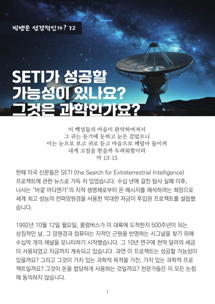 [CREATION TRUTH_빅뱅은 성경적인가? 72] SETI가 성공할 가능성이 있나요? 그것은 과학인가요? By ACT | December 15, 2025 Posted in 이충현 부회장