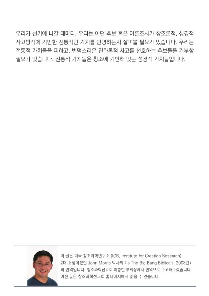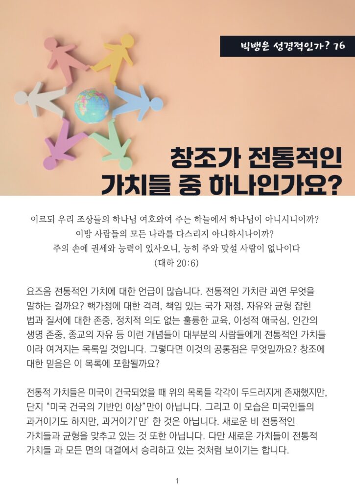 [CREATION TRUTH_빅뱅은 성경적인가 76] 창조가 전통적인 가치들 중 하나인가요?