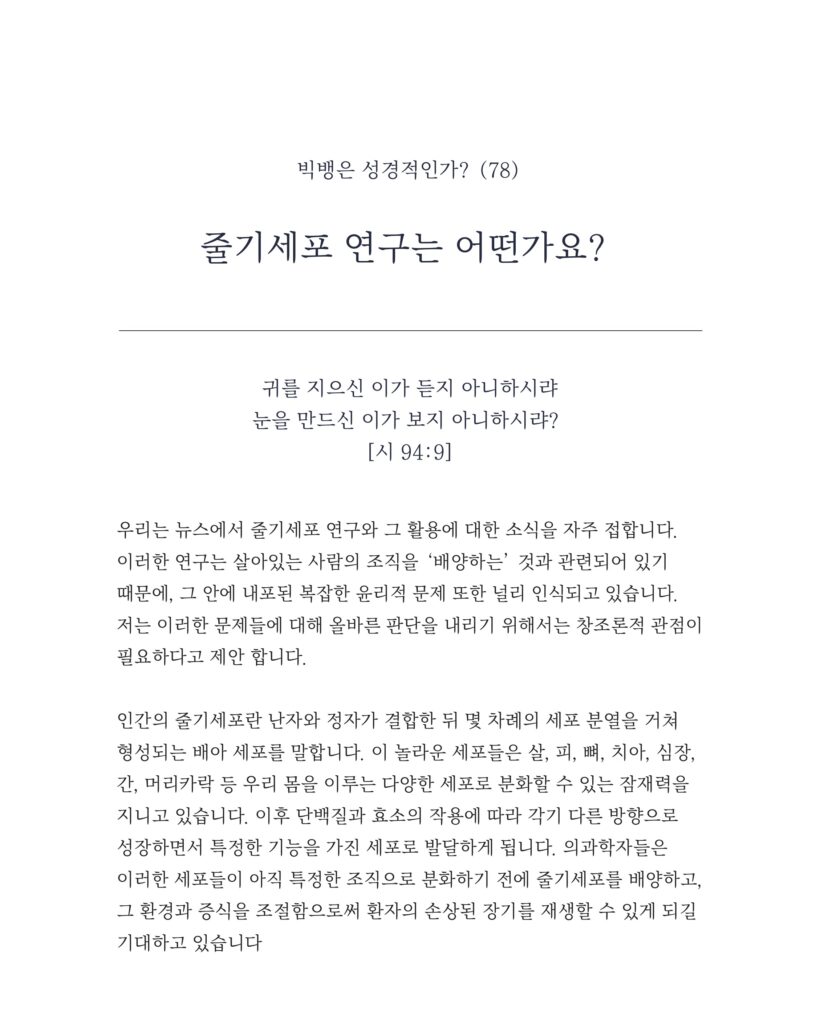 [CREATION TRUTH_빅뱅은 성경적인가 78] 줄기세포 연구는 어떤가요?