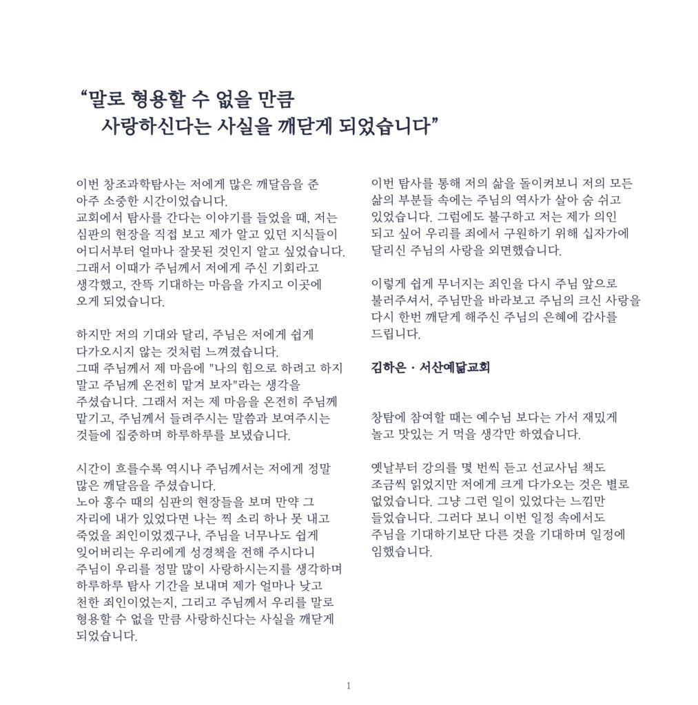 [CREATION TRUTH] 서산예닮교회 창탐스케치 & 소감문