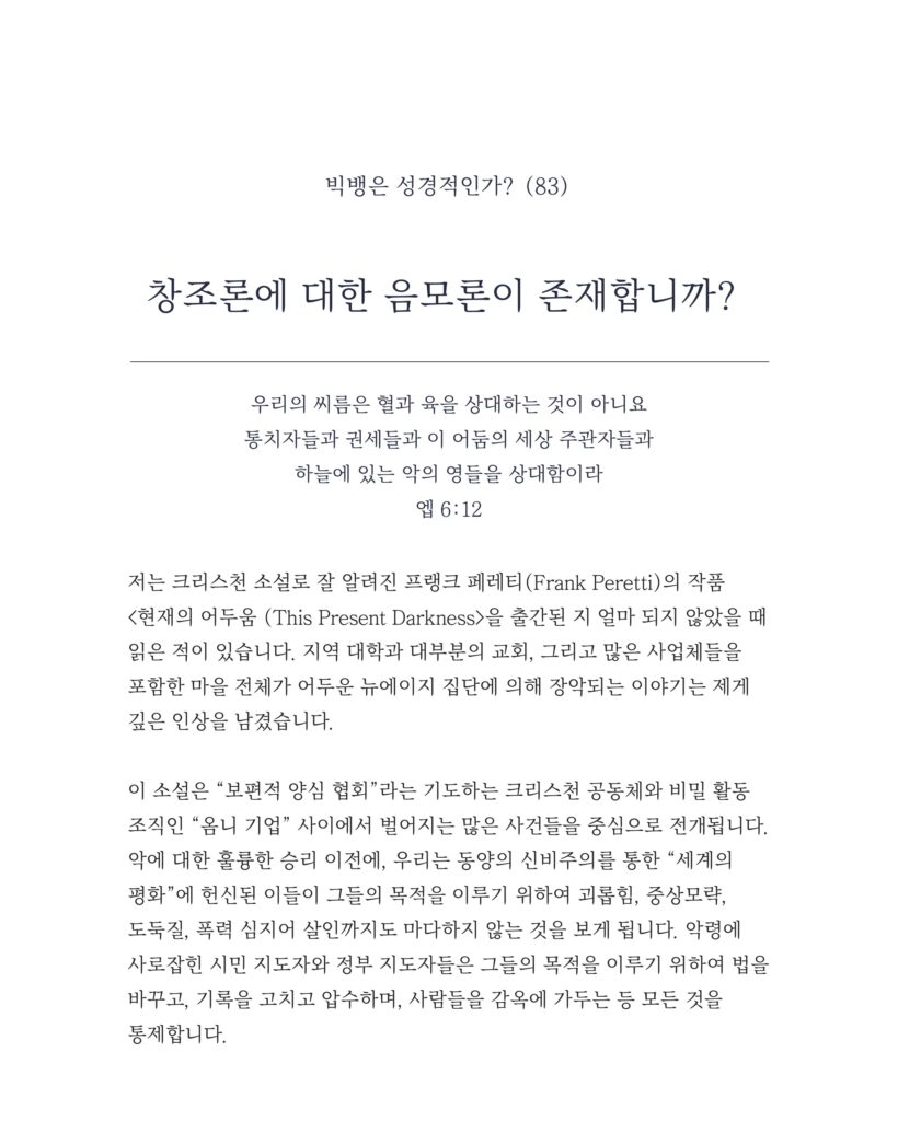 [CREATION TRUTH_ 빅뱅은 성경적인가 83] 창조론에 대한 음모론이 존재합니까?